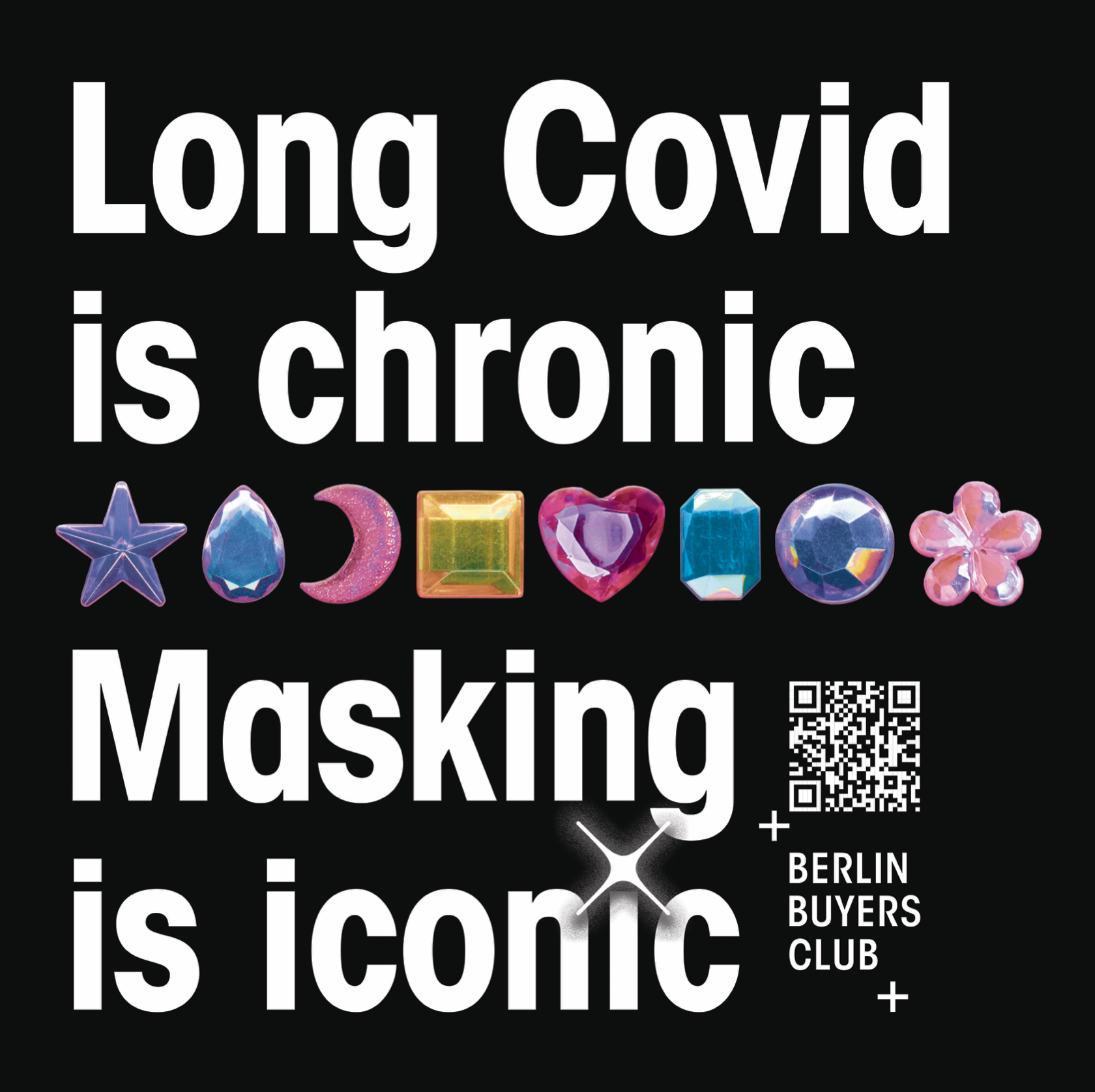 A portion of the cost covers the stickers, the materials used for packing and posting. Another portion will be used towards the costs of Berlin Buyers Club activities, another portion will be donated to mutual aid, and another will be donated to research. Follow us on Instagram to stay up to date with these announcements. All proceeds (30 cents for each sticker) of the “Mass Disabling Event” design will be donated to The Black Long Covid Experience.